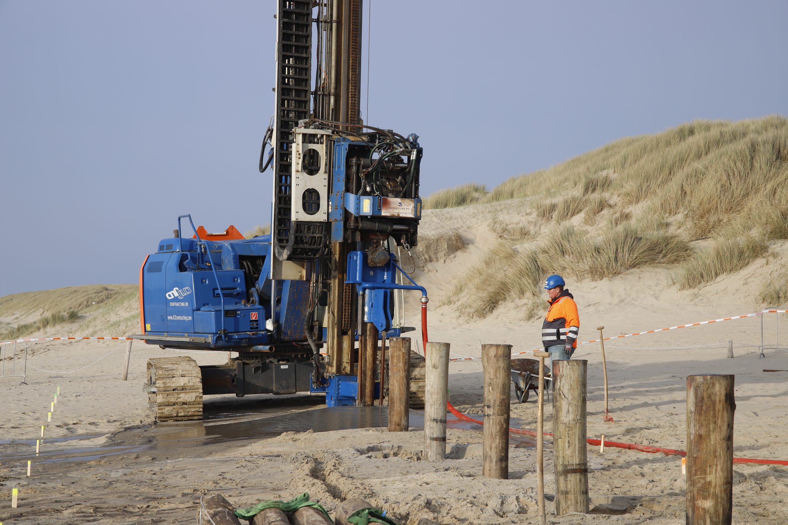 Op het strand van Texel, naast Paal 17, heeft JLD Contracting bv mogen werken aan een nieuwe paalfundatie voor Club 17. Voor het plaatsen van deze palen is team JLD aan de slag gegaan en heeft de 12 meter lange palen in een rap tempo op de vooraf bepaalde diepte geplaatst. Een prachtig project op het strand van Texel!